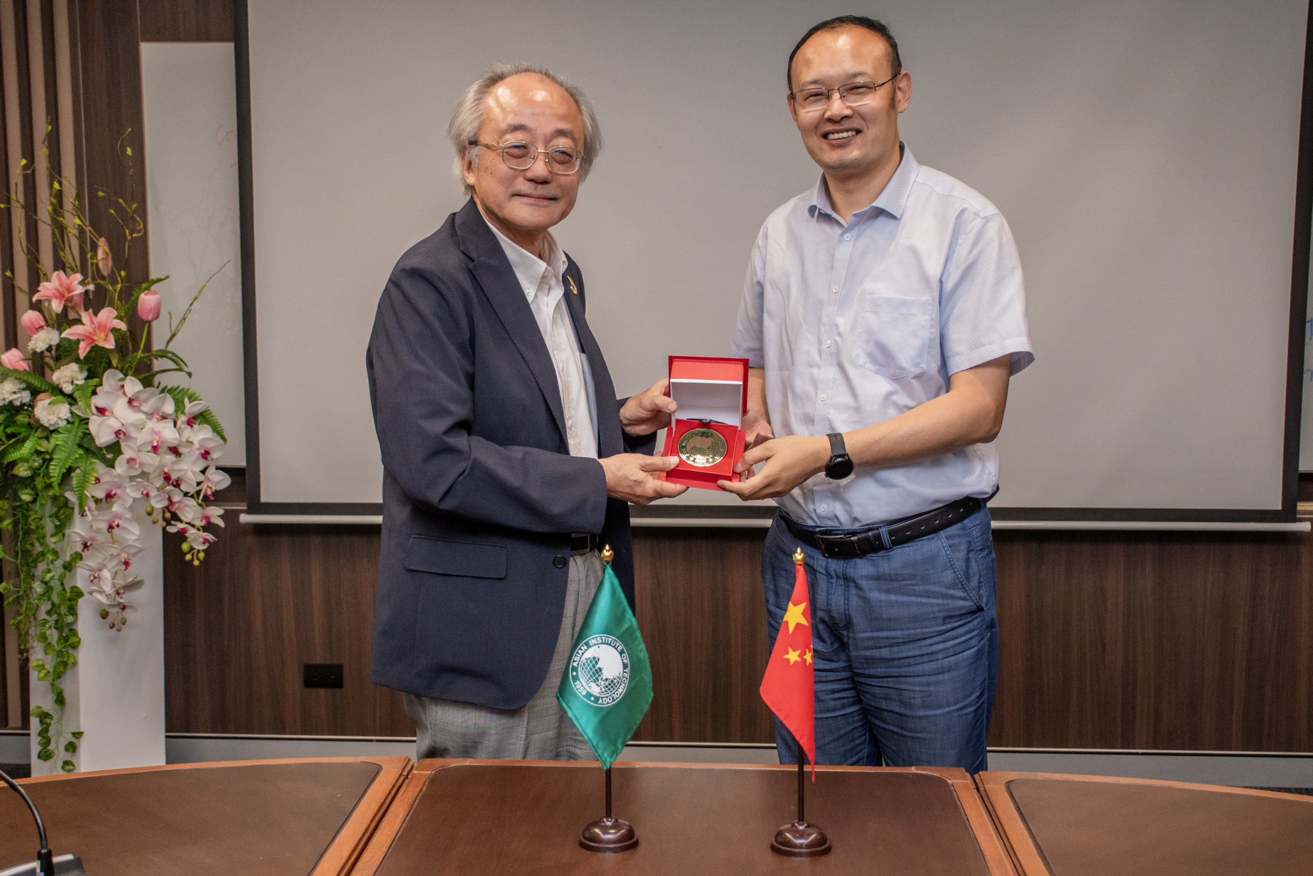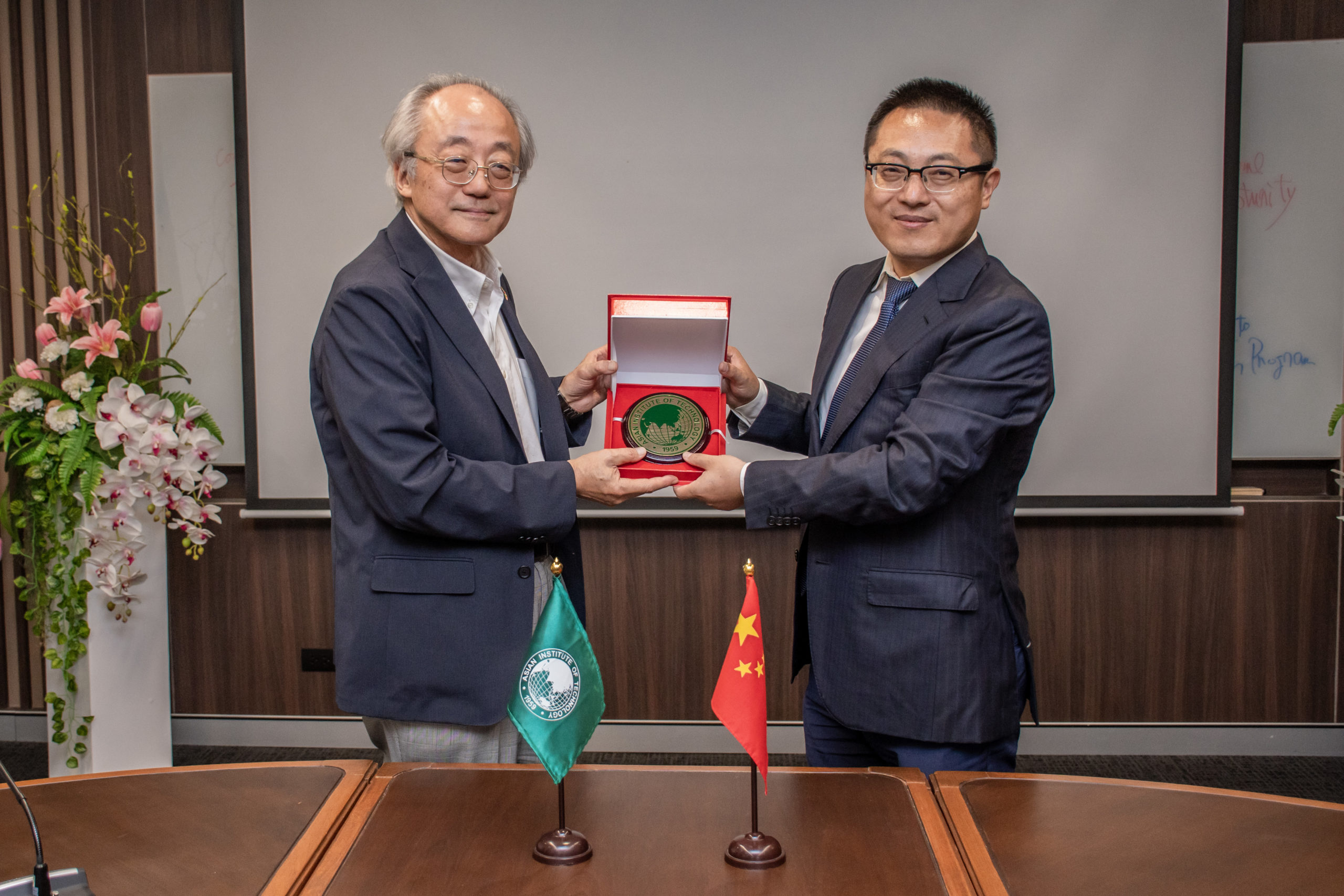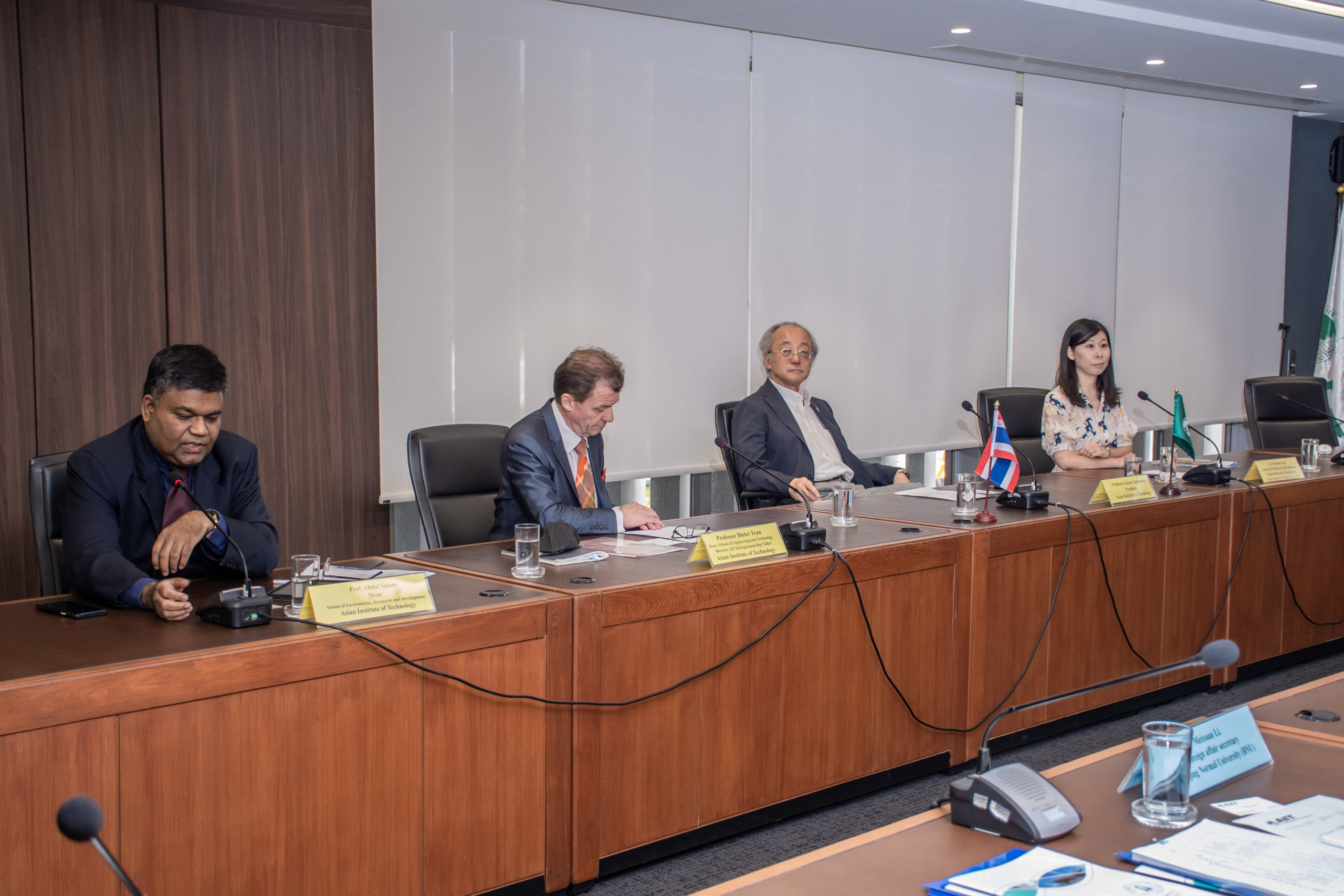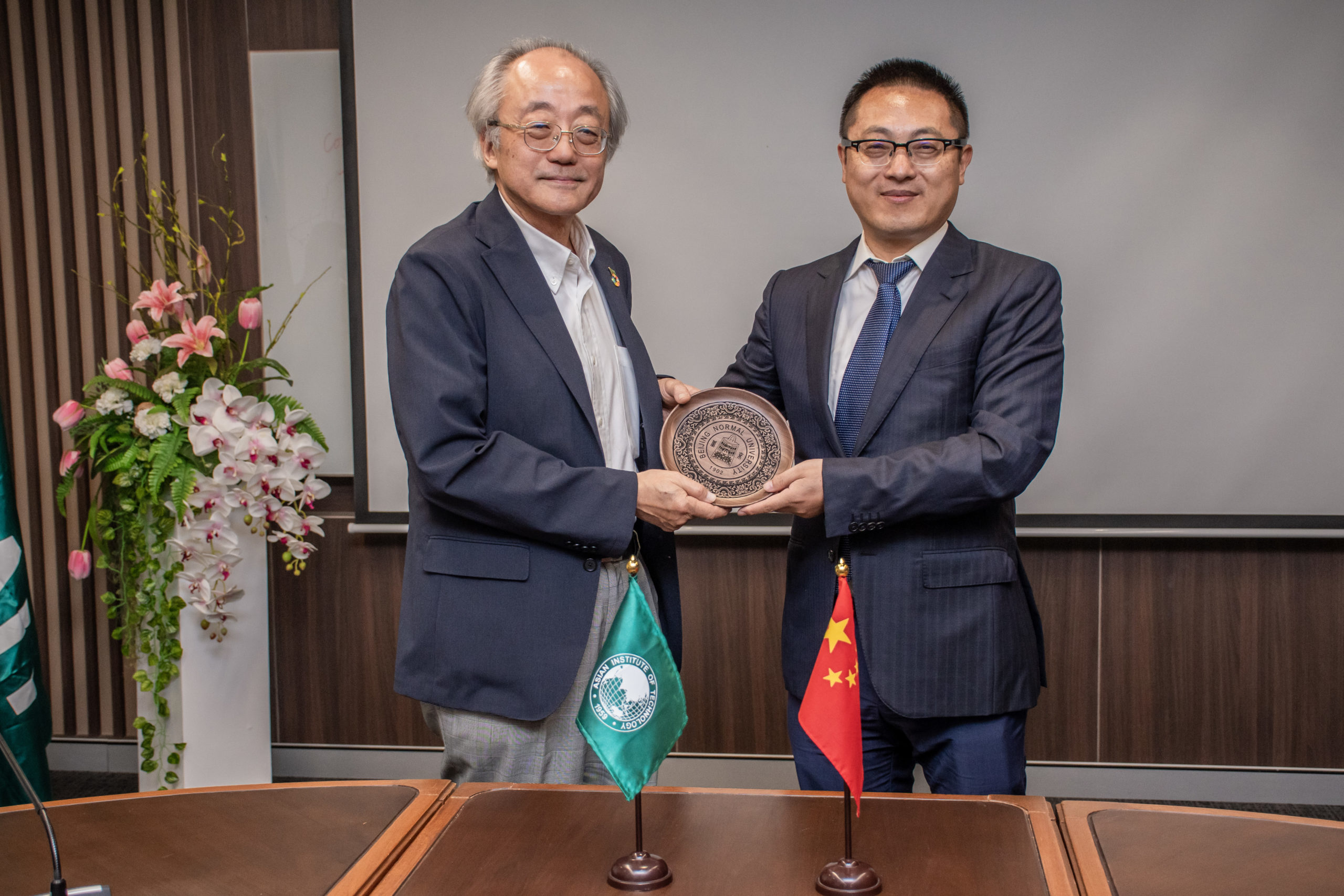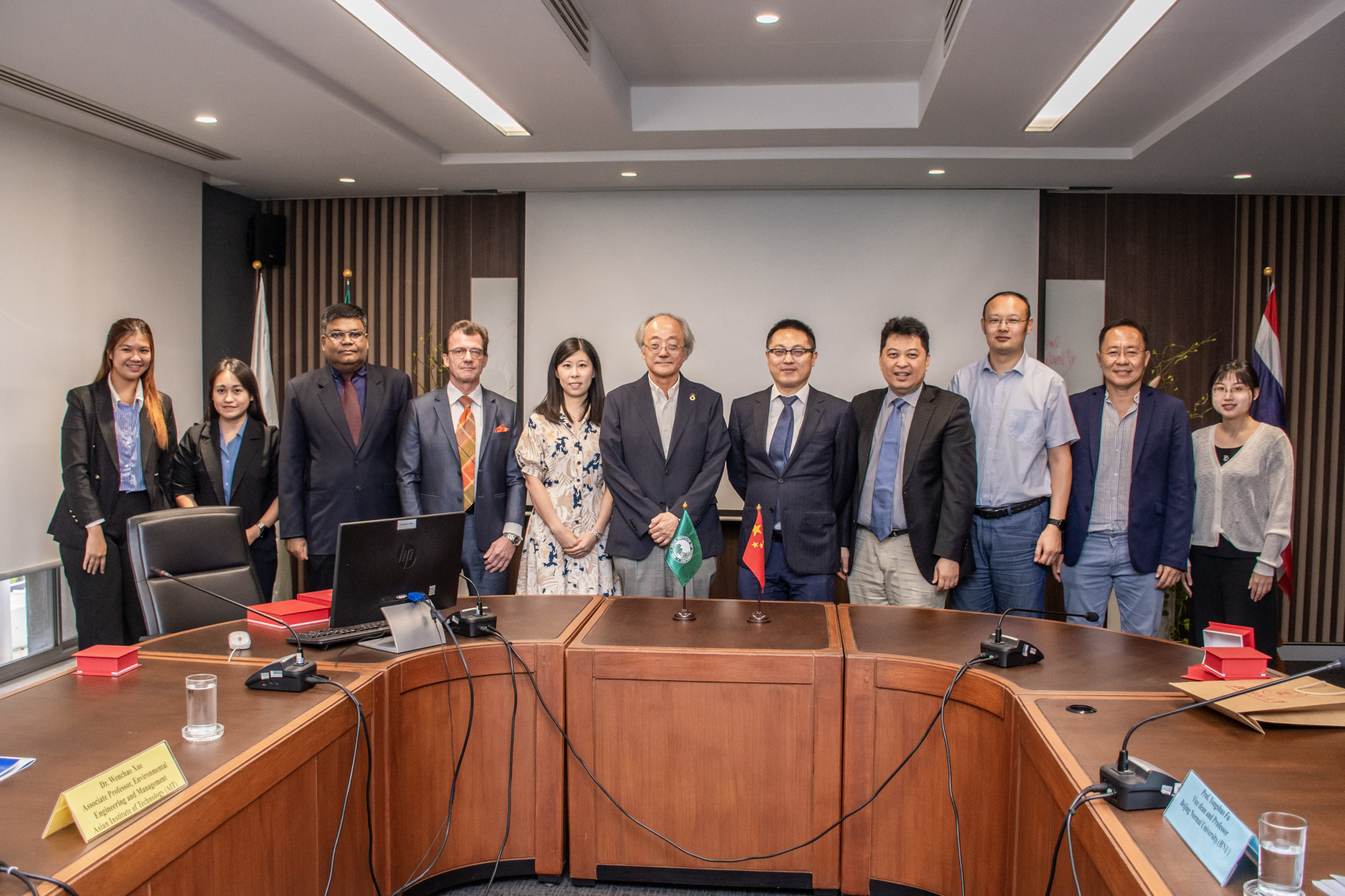 On June 27th 2023 – A delegation from Beijing Normal University (BNU), led by Prof. Hongguang Cheng, Dean and Professor College of Water Sciences, along with Prof. Yongshuo Fu, Vice Dean and Professor, Prof. How Yong Ng, Professor, and Meixuan Li, Foreign Affairs Secretary, have conducted a preliminary communication with Prof. Kazuo Yamamoto, President of Asian Institute of Technology (AIT). AIT faculty members led by Dr. Wenchao Xue, Director of AIT Belt and Road Research Center (AIT BRRC), Associate Professor in Environmental Engineering and Management, Professor Abdul Salam, Dean of the School of Environment, Resources, and Development (SERD), Professor Dieter Trau, Dean of the School of Engineering and Technology (SET) and Prof. Thammarat Koottatep, EECC/SERD, Co-director of Global Water & Sanitation Center (GWSC).
