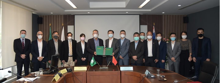 Dr. Eden Woon, AIT President, and Mr. Yinfei Wang, Managing Director of CSCECTH signed the MoA. Dr. Wenchao Xue, Director of the AIT Belt & Road Research Center, and Mr. Chongming Liu, Deputy Managing Director of CSCECTH signed as witnesses. Members of delegations from CSCECTH included Managing Director, Mr. Wang Yinfei; Deputy Managing Director Mr. Liu Chongming; Deputy Managing Director, Mr. Xu Weitao; Project Manager HST4-3, Mr. Zhou Jiayi; Manager, Mr. Li Miao; and Deputy Manager, Mr. Zang Rui.