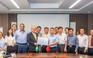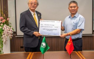 On 28 February 2023, a group of AIT Chinese Alumni living in Thailand, led by Mr. Liu Chongming (SEC’93), presented a mock cheque to AIT President Prof. Kazuo Yamamoto for their fourth installment in the amount of THB 200,000 towards fulfilling the signed agreement with AIT for their One Million Baht Student Exchange Scholarship Program Fund.