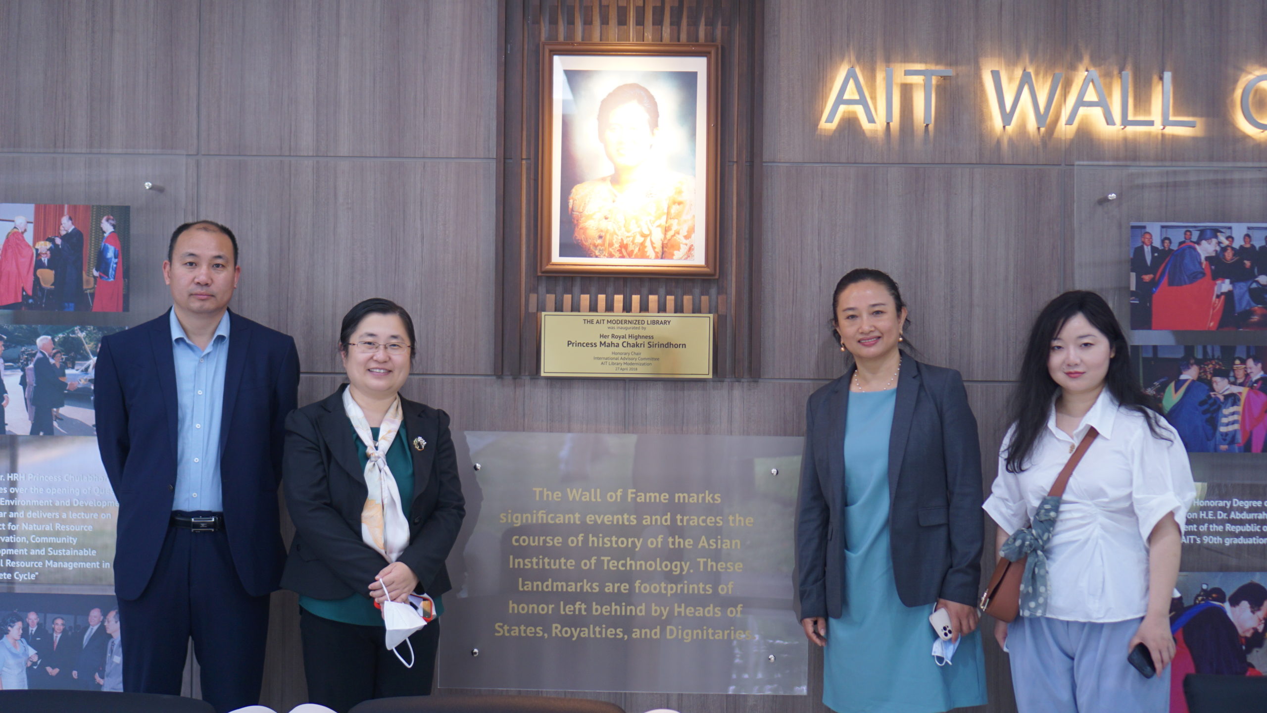 On 16 March 2023, visitors from Beijing Normal University, Zhuhai led by Jian Chen, Director of Admissions Office, Belt and Road College, Yue Qiu, Deputy Director of International Exchange and Cooperation Office, Xirui Yang, Assistant Dean of Phoenix College and Yaoyao Zhang, Foreign Affairs Secretary of International Business Faculty visited the AIT Belt and Road Research Center (BRRC).