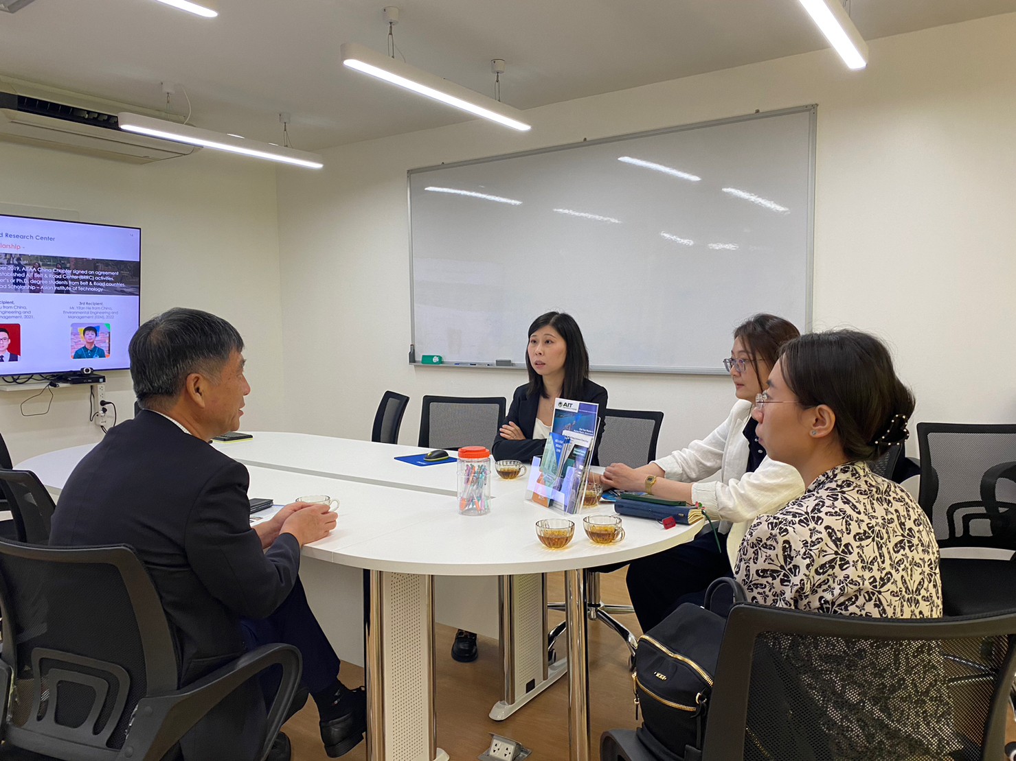 A preliminary communication between the visiting group and representatives from Asian Institute of Technology led by Prof. Shobhakar Dhakal, Vice President of Academic Affairs of Asian Institute of Technology, was conducted. Dr. Wenchao Xue, Director of AIT Belt and Road Research Center (AIT BRRC), Associate Professor in Environmental Engineering and Management, Prof. Abdul Salam, Dean of SERD, Prof. Huynh Trung Luong, Head of ISE, SET, Dr. Sarawut Ninsawat, Head of ICT, SET, And Mr. Shawn P. Kelly, Executive Director of OIPA of AIT, attended the meeting.