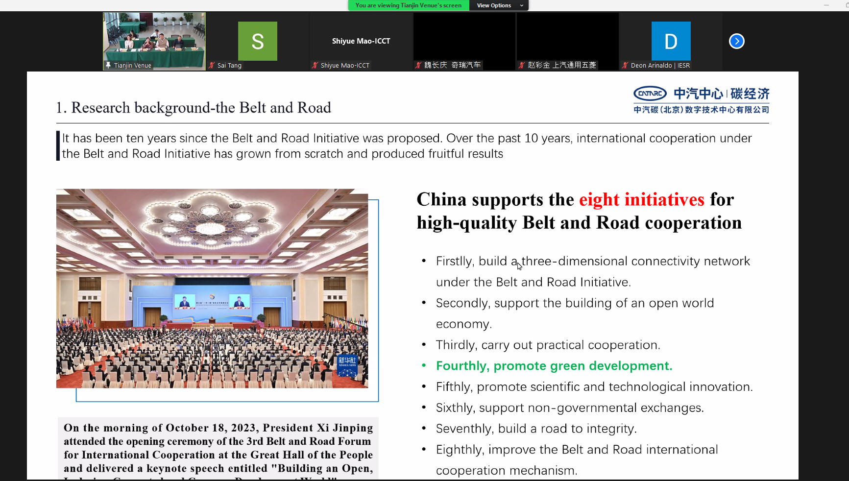 This seminar not only introduced the progress of the BRI New Energy Vehicle Low Carbon Standards Research and Demonstration application project, it help the participants better understand the situations of China-ASENA Standardization Cooperation Research in Automobile field, EV market and Electric Bus development in Latin America, the interconnected emission reduction in both upper stream and downstream of Automobile industry along the Belt and Road region, current status and challenges of low carbon vehicle development in Indonesia, the challenges faced in upgrading the EV industry and reducing emission in global value chain along the Belt and Road region, and the Singapore’s vehicle carbon emission regulations and effects which is an example to learn about the situation in southeast Asia countries.