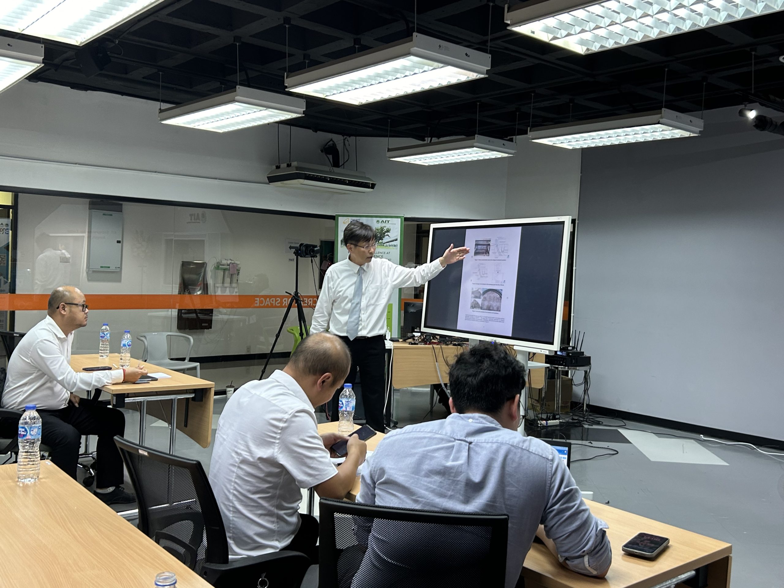 During the meeting, research progresses have been presented by three research teams from AIT. Followed by in-depth discussions on current researches, possible research collaboration in future phase of the Thailand- China High Speed Rail project, and other civil infrastructure projects by CSCEC in Thailand.