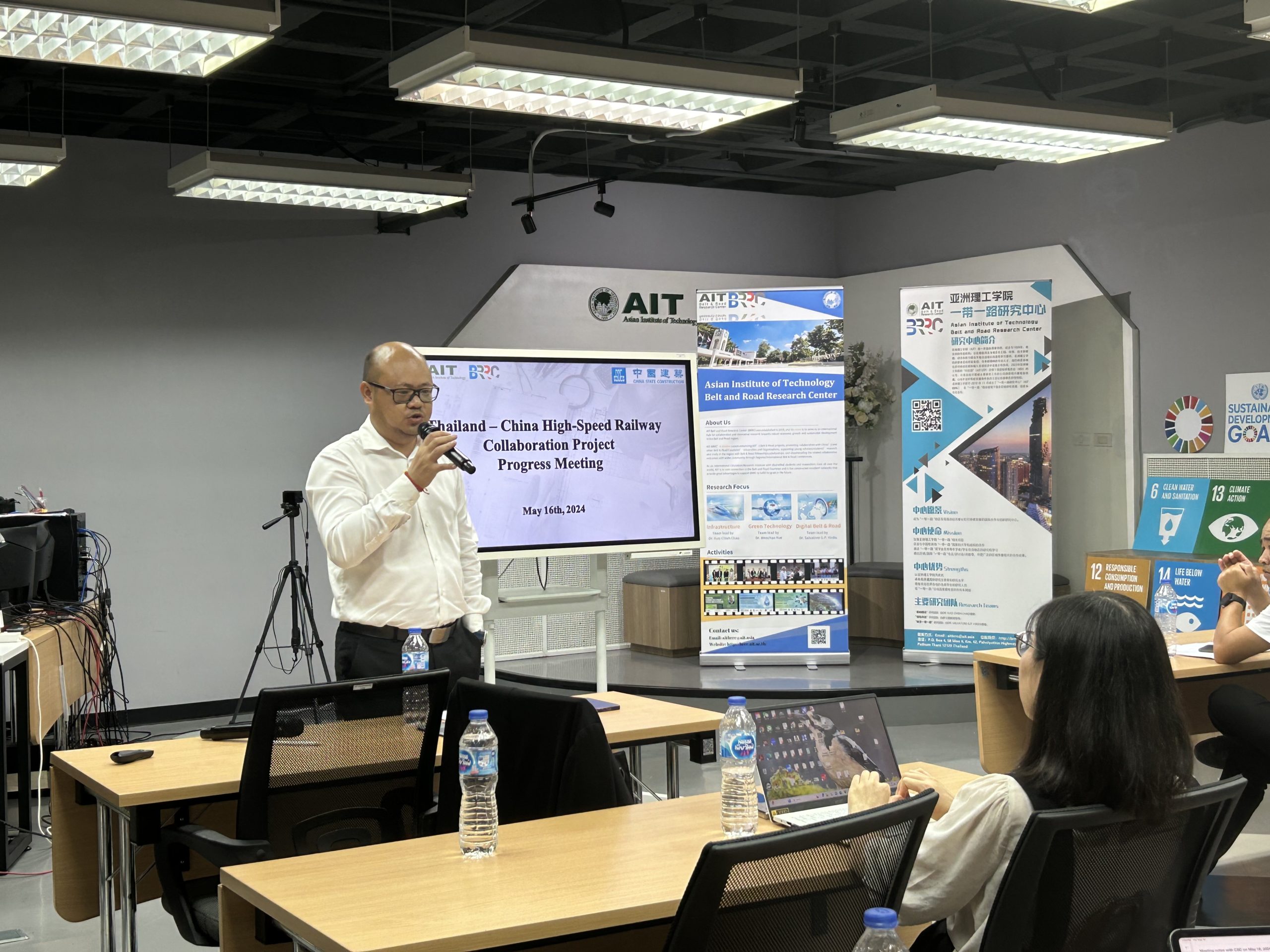 Mr. Zhou Jiayi, provided an update on the whole high speed rail project in Thailand, stressed the efforts made for the productivity and smooth progress of the current projects. He also emphasized the importance of the continuous support and cooperation with AIT and expressed interest in continuing cooperation with AIT for future projects.