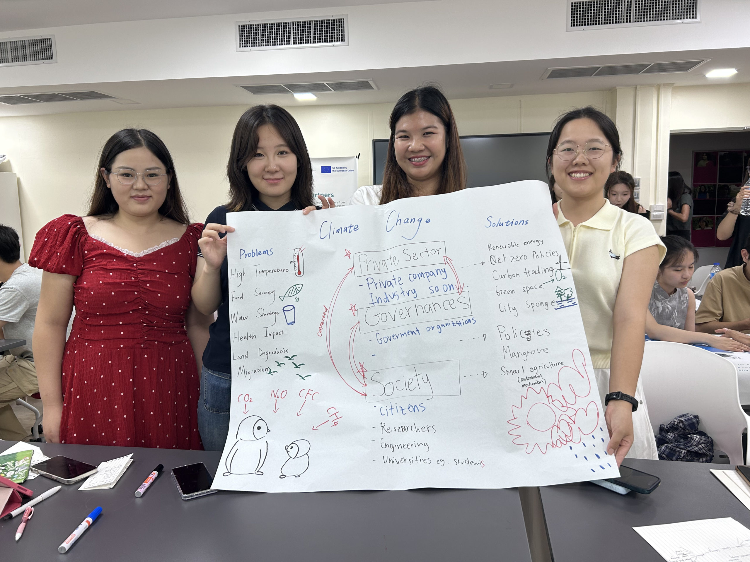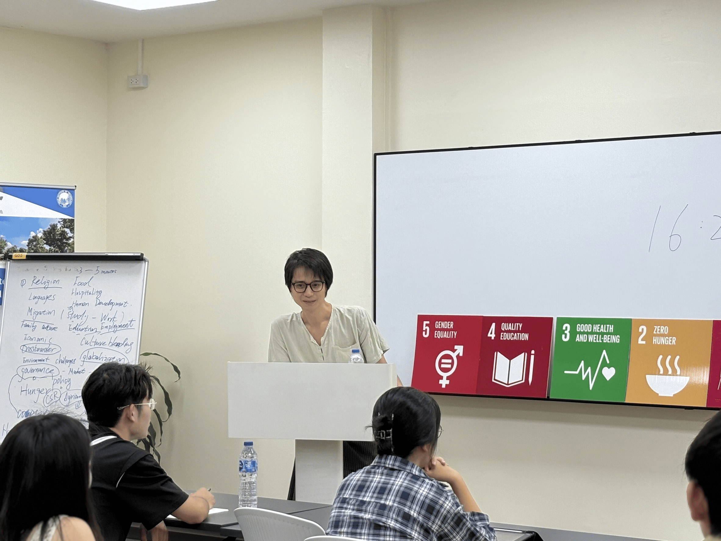 International student roundtables featured peers from Thailand, India, Bangladesh, and Myanmar, facilitating discussions on cultural diversity and sustainable development challenges. Participants also collaborated on group projects designing SDG-based solutions for global issues.