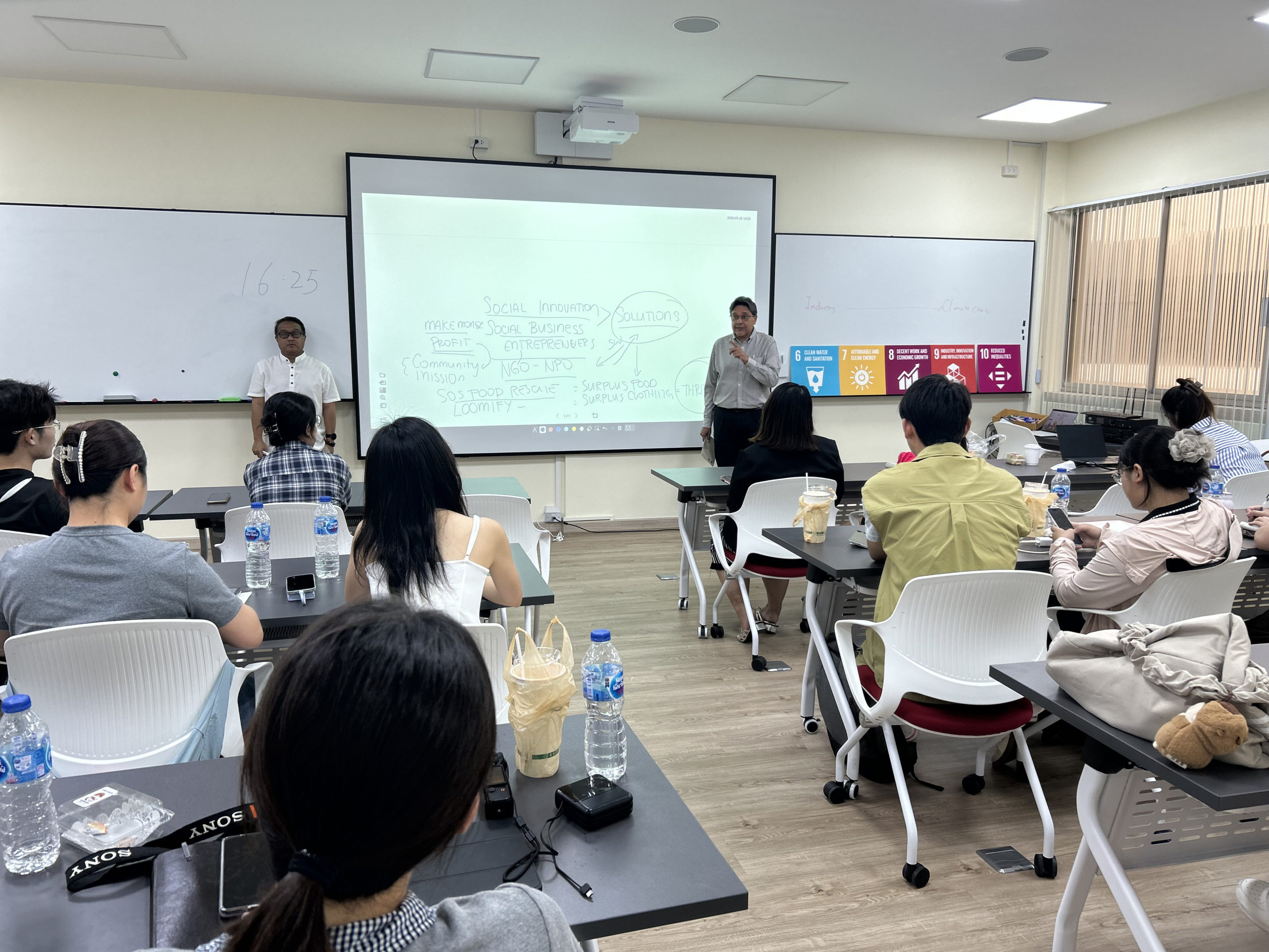International student roundtables featured peers from Thailand, India, Bangladesh, and Myanmar, facilitating discussions on cultural diversity and sustainable development challenges. Participants also collaborated on group projects designing SDG-based solutions for global issues.
